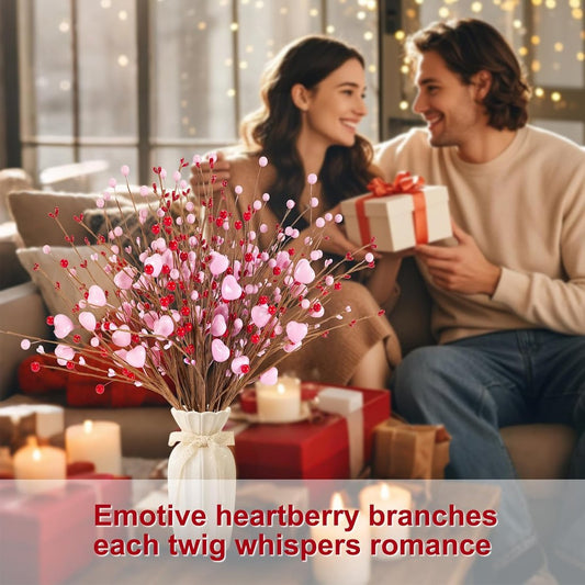 Romance in Bloom: Pink Heart & Berry Floral Stems (Valentine's Edition)