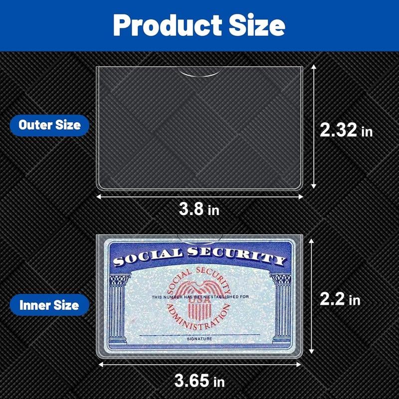 Wide Application: Our card protector sleeves measure 3.8 x 2.32 inches, fitting cards within 3.6 x 2.2. Protects social security, medicare, credit cards, licenses, IDs, and more.