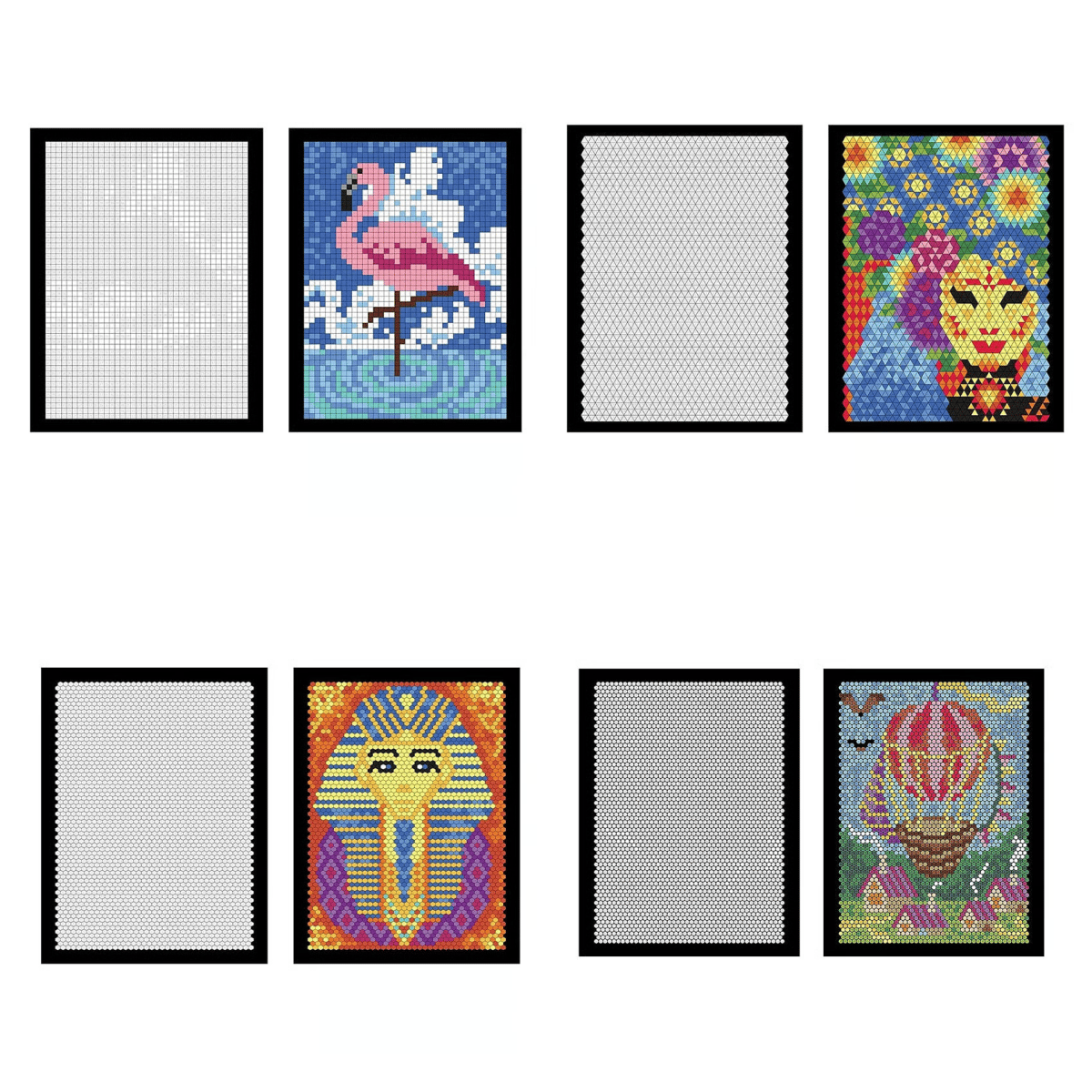 Explore four geometric patterns: squares, triangles, hexagons, and circles – each revealing hidden images as you color. The premium black paper intensifies colors and adds gallery-ready depth to every finished piece.